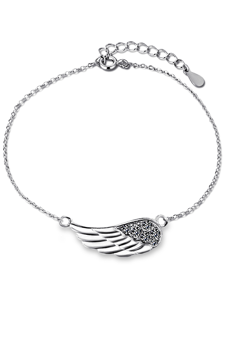 Stříbrný náramek zdobený andělským křídlem ryzosti 925/1000 v lesklé povrchové upravě. Náramek má posuvné zapínání a sedne na každou ruku. K náramku už je zahrnuta dárková krabička na kterou můžeme vyrýt delší text. Požadované rytí nám napište do poznámky v objednávce (třetí krok v košíku).