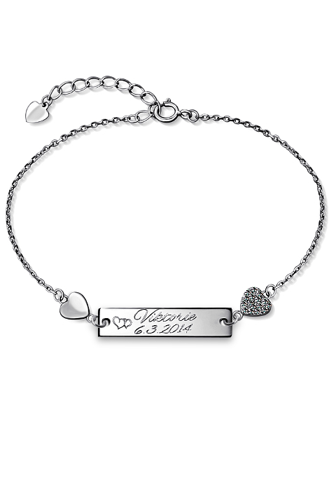 Dámský stříbrný náramek s destičkou v lesklé povrchové úpravě ryzosti 925/1000. Na hladkou destičku lze vyrýt datum, jméno nebo vaše věnování (rytí už je v ceně náramku). Délka stříbrného náramku je nastavitelná 18cm až 20cm (běžná dámská velikost). Do poznámky v objednávce nám napište jaké budete chtít rytí na destičky (třetí krok v košíku).