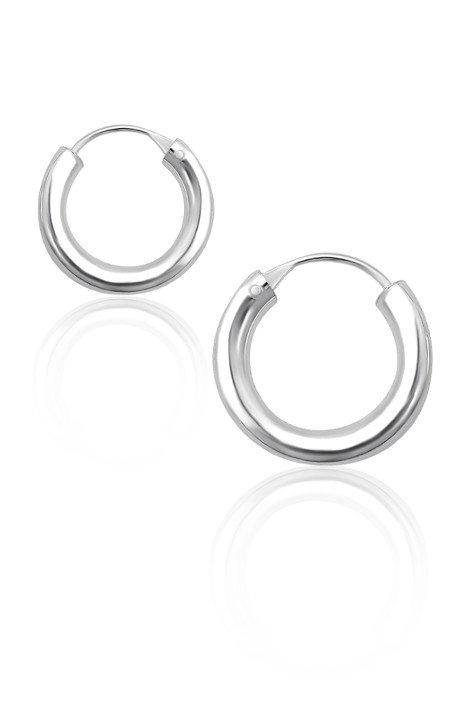 Stříbrné náušnice ve tvaru kruhu v lesklé povrchové úpravě. Dámské kruhy jsou vyrobeny ze stříbra ryzosti 925/1000 a následně rhodiovány. Cena dámských náušnic je za pár. Pokud budete chtít je jednu náušnici, napište nám o ni do poznámky v objednávce (třetí krok v košíku). Cena pak bude poloviční.