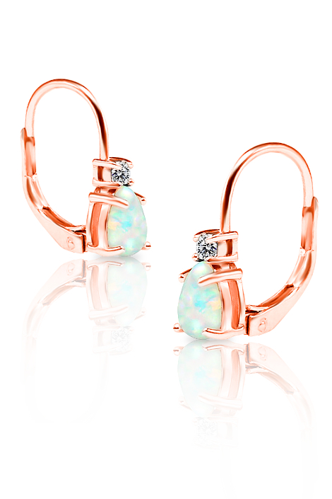Dámské náušnice jsou vyrobeny ze stříbra 925/1000 a následně pozlaceny v růžové barvě. Stříbrné náušnice jsou osazeny krásným opálem (kameny jsou syntetické). Náušnice mají klasický dámský uzávěr na klapku.