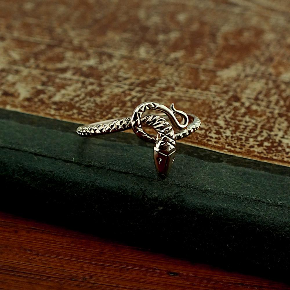 Prsten je vyrobený z růžového zlata ryzosti 585/1000 v lesklé povrchové úpravě. Prsten je ve tvaru propleteného hada. Dámský prsten s hadem je možné vyrobit i z bílého zlata nebo žlutého. Prsten vyrábíme ve všech velikostech. Velikost nám napište do poznámky v objednávce (třetí krok v košíku).