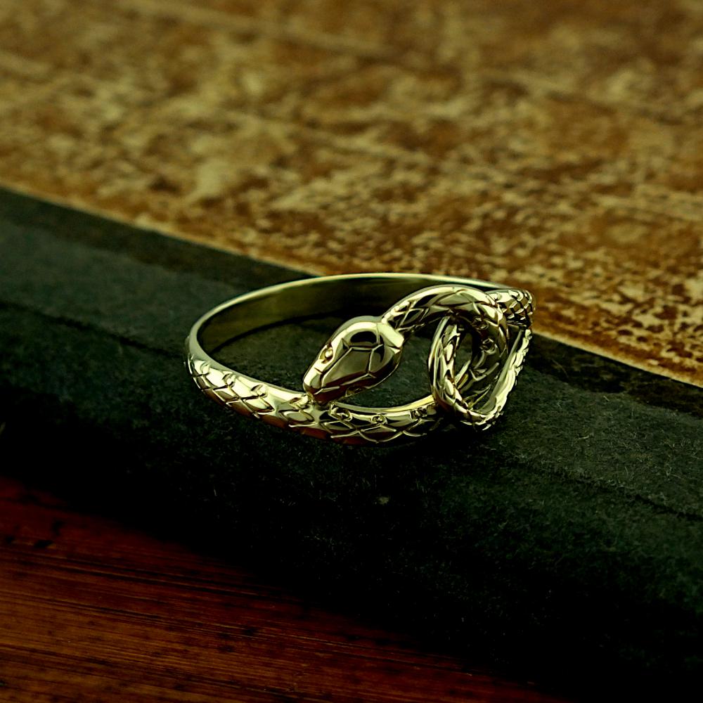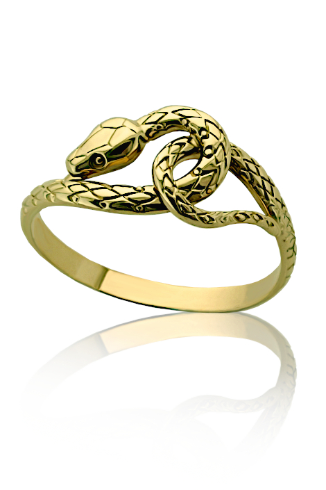 Prsten je vyrobený ze žlutého zlata ryzosti 585/1000 v lesklé povrchové úpravě. Prsten je ve tvaru propleteného hada. Dámský prsten s hadem je možné vyrobit i z bílého zlata nebo stříbra. Prsten vyrábíme ve všech velikostech. Velikost nám napište do poznámky v objednávce (třetí krok v košíku).