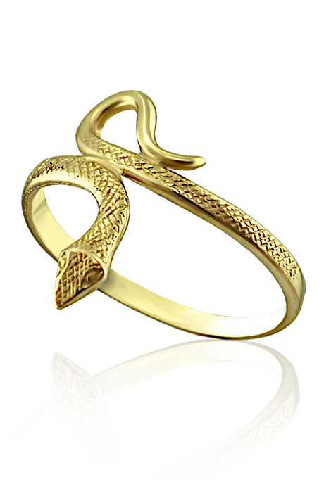 Prsten je vyrobený ze žlutého zlata ryzosti 585/1000 v lesklé povrchové úpravě. Prsten je ve tvaru propleteného hada. Dámský prsten s hadem je možné vyrobit i z bílého zlata nebo stříbra. Prsten vyrábíme ve všech velikostech. Velikost nám napište do poznámky v objednávce (třetí krok v košíku).