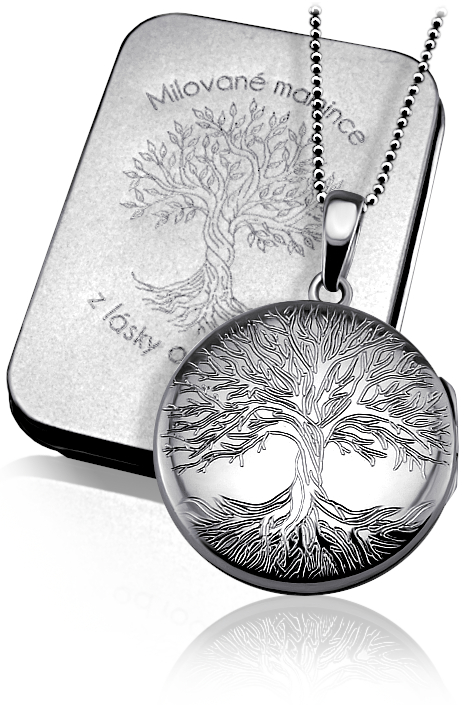 Řetízek a medailonek jsou vyrobeny ze stříbra ryzoti 925/1000 v lesklé povrchové úpravě. Řetízek je zdobený stříbrným otevíracím medailonkem a vaším rytím. Rytí na medailonek a krabičku je zcela na vás, na fotografii je pouze ilustrativní vzor. Zapínaní řetízku je na pérový kroužek a délka je 45 cm. V ceně náhrdelníku je již zahrnuta dárková krabička, na kterou můžeme vyrýt delší věnování. Požadované rytí na krabičku a medailonek, popřípadě jinou délku řetízku nám napište do poznámky v objednávce (třetí krok objednávky v košíku). Pokud budete chtít vložit vaše fotografie do medailonku, pošlete nám je emailem s číslem vaší objednávky.