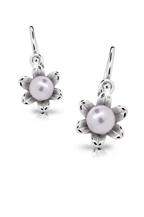 Dětské náušnice jsou vyrobeny ze stříbra ryzosti 925/000 a jsou rhodiované. Naušnice jsou vhodné pro děti od nejmenších miminek až po školáky. Dětské naušnice jsou ozdobeny perlou a zirkony. Stříbrné náušnice jsou vhodnou náhradou za zlaté náušnice tam, kde zlato v ouškách černá. Dopřejte svému dítěti kvalitní náušnice české výroby.