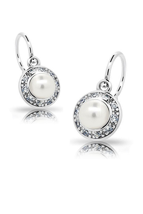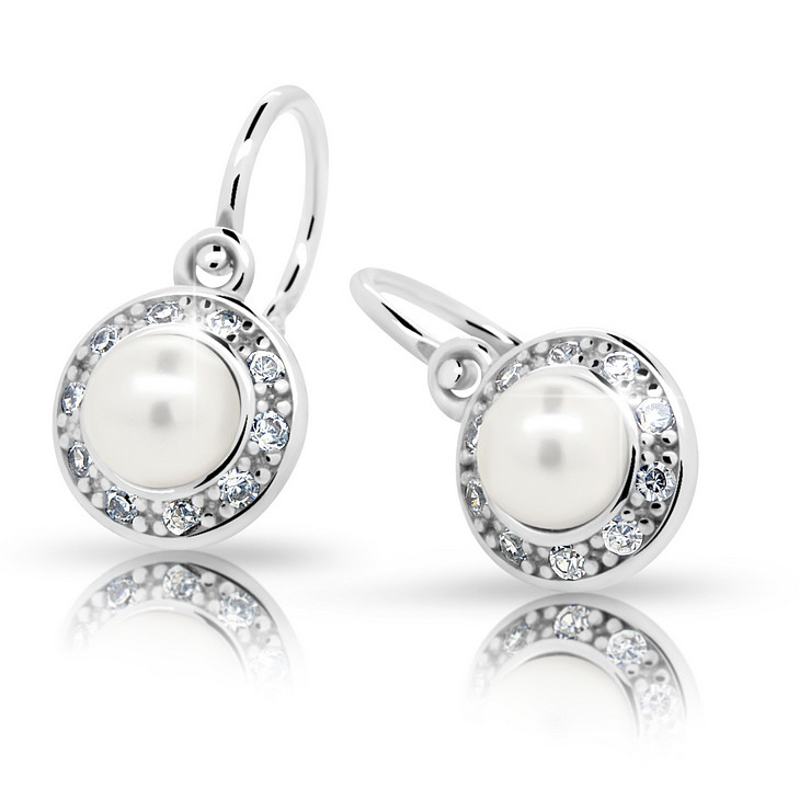 Dětské náušnice jsou vyrobeny ze stříbra ryzosti 925/000 a jsou rhodiované. Naušnice jsou vhodné pro děti od nejmenších miminek až po školáky. Dětské naušnice jsou ozdobeny perlou a zirkony. Stříbrné náušnice jsou vhodnou náhradou za zlaté náušnice tam, kde zlato v ouškách černá. Dopřejte svému dítěti kvalitní náušnice české výroby.