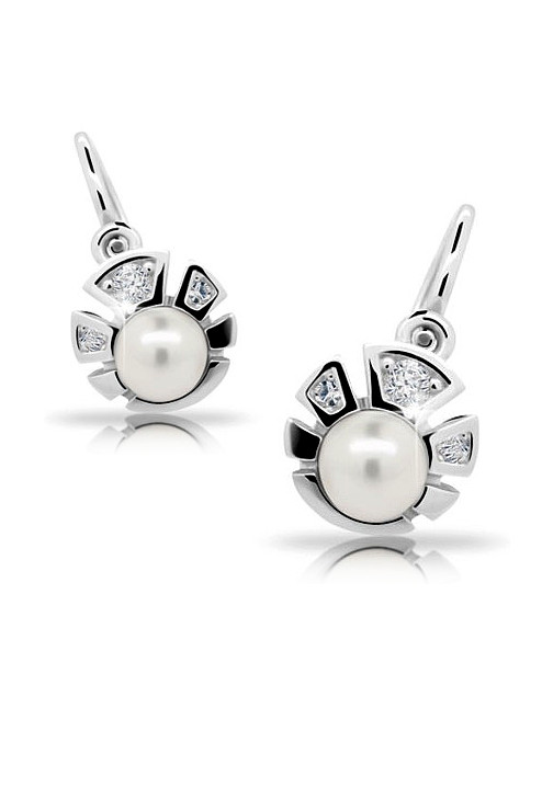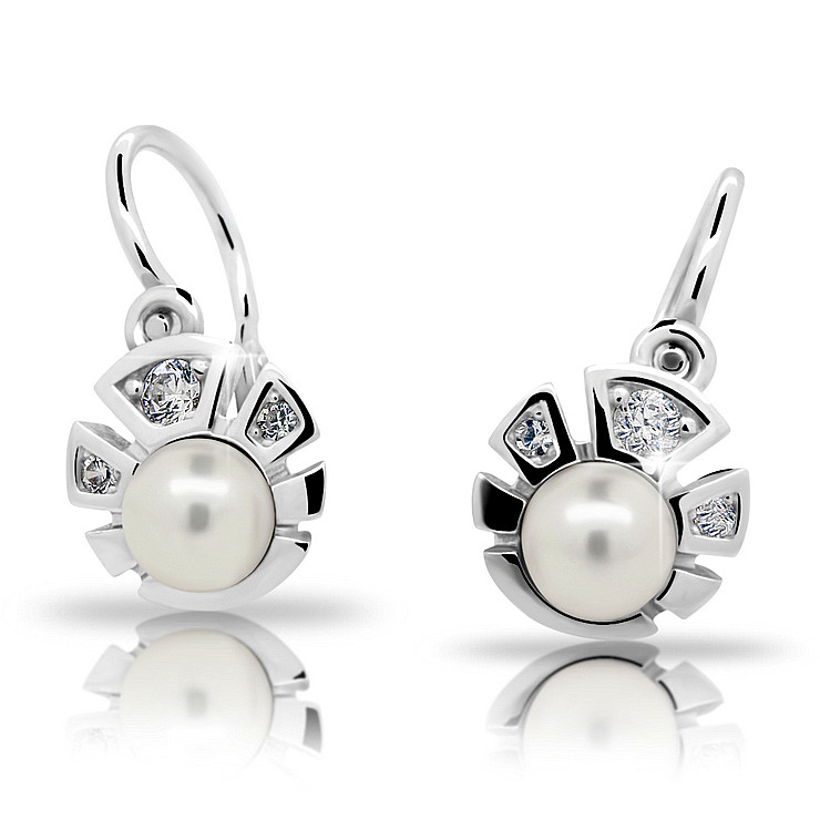 Dětské náušnice jsou vyrobeny ze stříbra ryzosti 925/000 a jsou rhodiované. Naušnice jsou vhodné pro děti od nejmenších miminek až po školáky. Dětské naušnice jsou ozdobeny perlou a zirkony. Stříbrné náušnice jsou vhodnou náhradou za zlaté náušnice tam, kde zlato v ouškách černá. Dopřejte svému dítěti kvalitní náušnice české výroby.