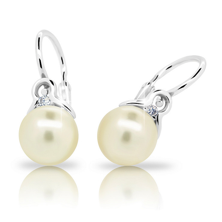 Dětské náušnice jsou vyrobeny ze stříbra ryzosti 925/000 a jsou rhodiované. Naušnice jsou vhodné pro děti od nejmenších miminek až po školáky. Dětské naušnice jsou ozdobeny perlou a zirkony. Stříbrné náušnice jsou vhodnou náhradou za zlaté náušnice tam, kde zlato v ouškách černá. Dopřejte svému dítěti kvalitní náušnice české výroby.