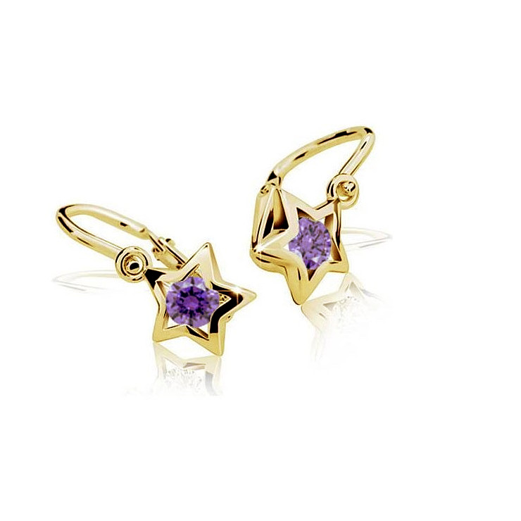 Zlaté náušničky ve tvaru hvězdiček, vyrobené z bílého nebo žlutého zlata ryzosti 585/1000 s kvalitními barevnými zirkony dle vašeho výběru. Do nejmenšího detailu propracované náušnice vyrobené zkušenými zlatníky v České Republice. Náušnice se zapínají ze předu na tzv. dětskou brizuru a skvěle drží i v drobných ouškách děvčátek i miminek. Barvu kamínku popřipadě změnu barvy zlata nám napište do poznámky v objednávce ( třetí krok v košíku ).