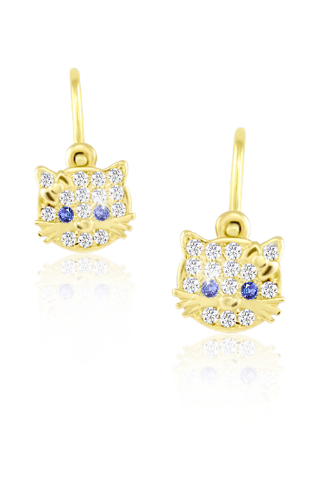 Dětské náušnice jsou vyrobeny ze žlutého zlata ryzosti 585/1000 v lesklé povrchové úpravé. Dětské náušničky jsou zdobené syntetickým safírem a zirkonem. Naušnice jsou vhodné pro děti od nejmenších miminek až po školáky. Náušnice se zapínají ze předu na tzv. dětskou brizuru a skvěle drží i v drobných ouškách děvčátek a miminek. Dětské náušničky je možné vyrobit z bílého zlata a osadit kamínky dle vašeho přání. Barvu kamínku popřípadě změnu barvy zlata nám napište do poznámky v objednávce ( třetí krok v košíku ).
