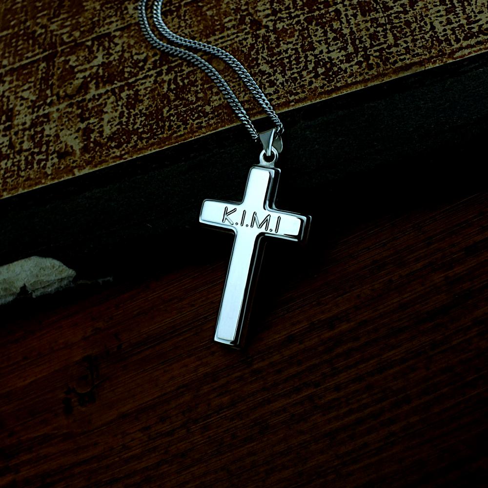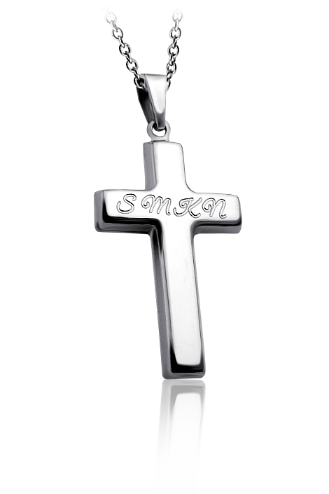 Přívěsek křížek vyrobený ze stříbra ryzosti 925/1000 v lesklé povrchové úpravě. Na křížek je možné vyrýt jméno nebo datum (rytí je v ceně přívěsku). K přívěsku už je zahrnuta krabička na kterou mužeme vyrýt vaše věnování. Do poznámky v objednávce nám jen napište jaké budete chtít rýtí ( třetí krok v košíku ).