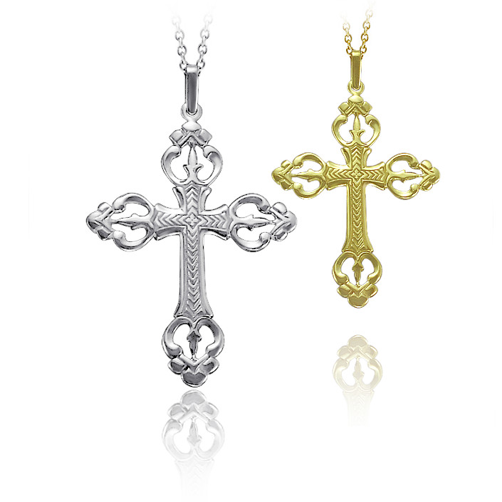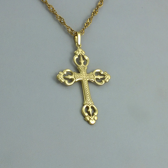 Zlatý přívěsek kříž s ornamenty