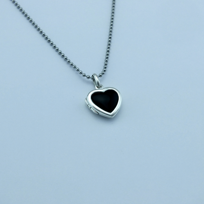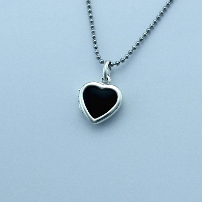 Stříbrný otevírací medailonek zdobený syntetickým onyxem. Přívěsek ve tvaru srdíčka je vyrobený ze stříbra ryzosti 925/1000 v lesklé povrchové úpravě. Do otevíracího medailonku lze vložit dvě fotografie o rozměru 13mm (fotografie vám rádi do přívěsku vložíme). Na zadní stranu se vejde krátké věnování (miluji tě, k narozeninám, od babičky...). Rytí je už v ceně přívěsku. Požadovanou rytinu nám napište do poznámky v objednávce (třetí krok v košíku). Pokud budete chtít vložit vaše fotografie do medailonku, pošlete nám je emailem s číslem vaší objednávky.
