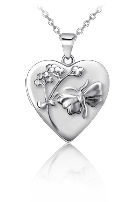 Stříbrný přívěsek, otevírací medailonek ve tvaru srdíčka s raženým motivem. Přívěsek je vyrobený ze stříbra ryzosti 925/1000 v lesklé povrchové úpravě. Na zadní stranu můžeme vyrýt krátké věnování ( miluji tě, k narozeninám, od babičky...).. Veškeré rytí na dámský medailonek je už zahrnuto v ceně přívěsku. Požadovanou rytinu nám napište do poznámky v objednávce (třetí krok v košíku). Pokud budete chtít vložit vaše fotografie do medailonku, pošlete nám je emailem s číslem vaší objednávky.