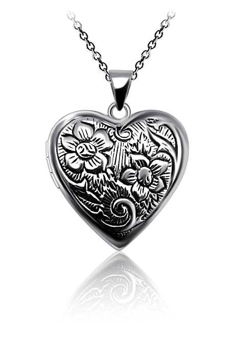 Otvírací medailonek srdíčko ze stříbra s raženou rytinou