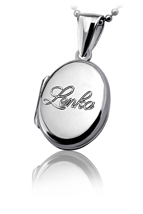 Přívěsek ve tvaru oválku je vyrobený ze stříbra ryzosti 925/1000. Do otevíracího medailonku lze vložit dvě fotografie o rozměru 14mm na 19mm (fotografie vám rádi do přívěsku vložíme). Na přední stranu je možné vyrýt krátké věnování nebo vaše iniciály (miluji tě,k narozeninám,od babičky...). Rytí písmenek a věnování je už v ceně stříbrného přívěsku. Do poznámky v objednávce nám jen napište jaké budete chtít rýtí (třetí krok v košíku). Pokud potřebujete vložit vaše fotografie do medailonku, pošlete nám je emailem s číslem vaší objednávky (veškeré úpravy jsou už zahrnuty v ceně medailonku).