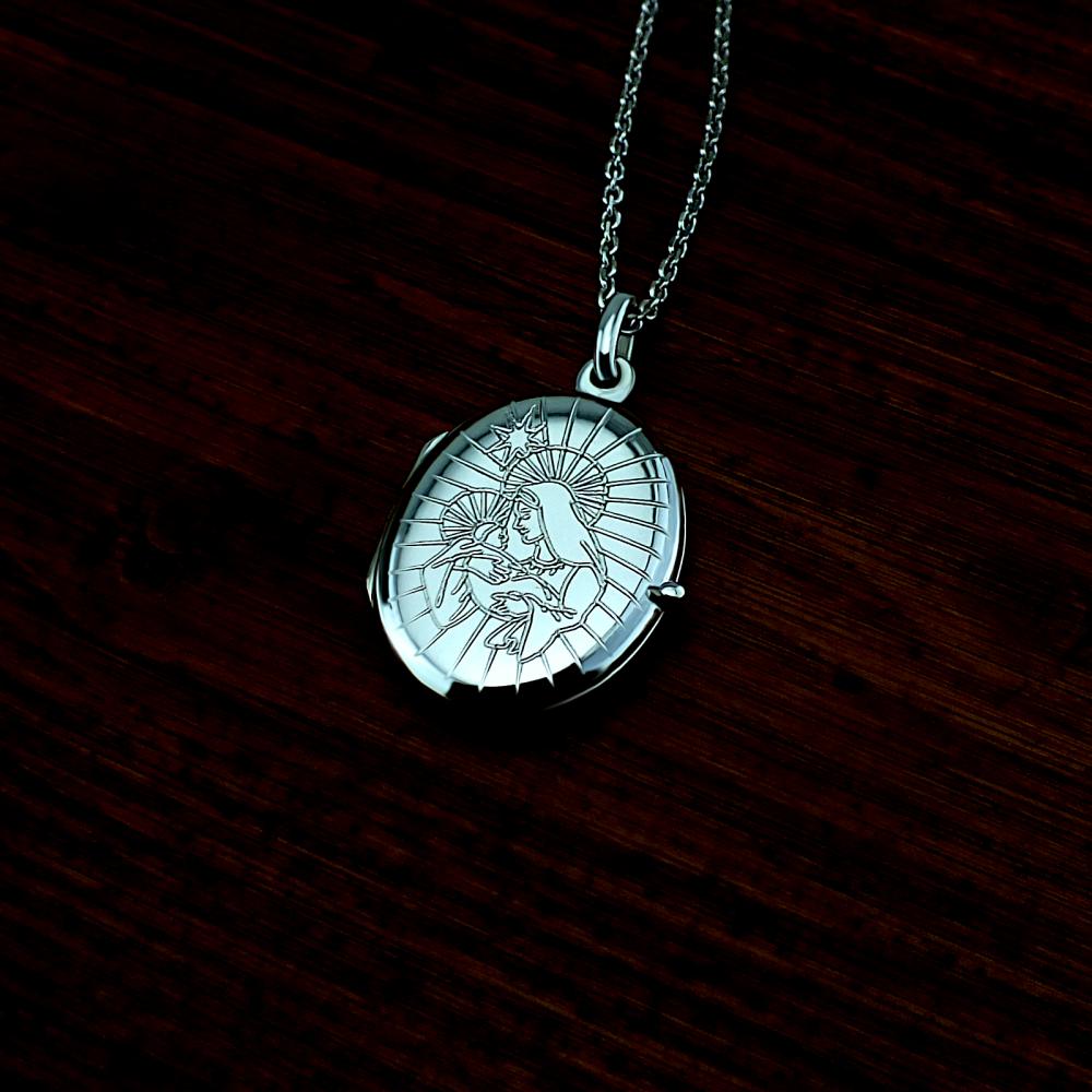 Přívěsek ve tvaru oválku je vyrobený ze stříbra ryzosti 925/1000 v lesklé povrchové úpravě. Do otevíracího medailonku lze vložit dvě fotografie které vám rádi do přívěsku vložíme. Na zadní stranu je možné vyrýt krátké věnování (miluji tě,k narozeninám,od babičky...). Rytí věnování je už v ceně stříbrného přívěsku. Do poznámky v objednávce nám jen napište jaké budete chtít rýtí (třetí krok v košíku). Pokud budete chtít vložit vaše fotografie do medailonku, pošlete nám je emailem s číslem vaší objednávky.