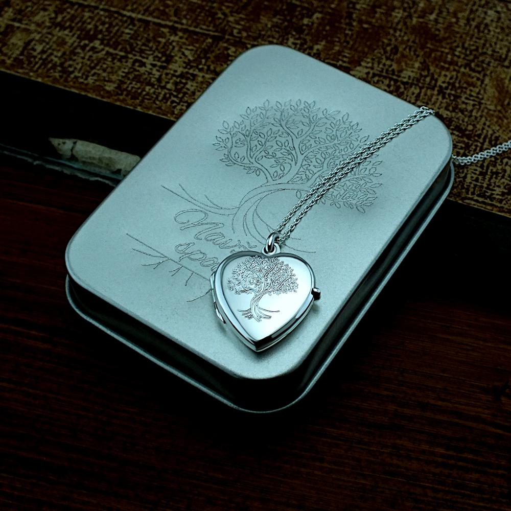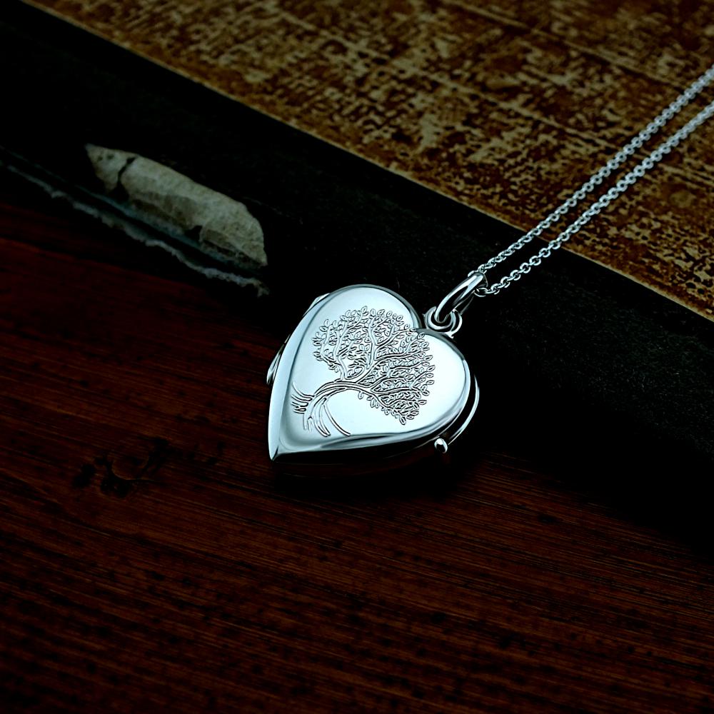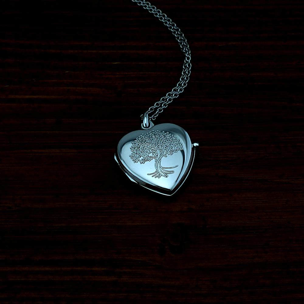 Stříbrný přívěsek, otevírací medailonek ve tvaru srdíčka s rytým motivem strom života. Přívěsek je vyrobený ze stříbra ryzosti 925/1000 v lesklé povrchové úpravě. Na zadní stranu medailonku můžeme vyrýt krátké věnování ( miluji tě, k narozeninám, od babičky...).. Veškeré rytí na dámský medailonek je už zahrnuto v ceně přívěsku. Požadovanou rytinu nám napište do poznámky v objednávce (třetí krok v košíku). Pokud budete chtít vložit vaše fotografie do medailonku, pošlete nám je emailem s číslem vaší objednávky.