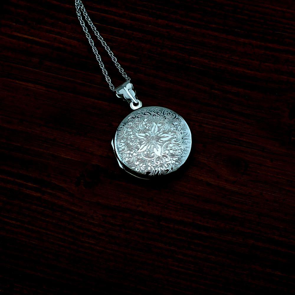 Přívěsek ve tvaru kolečka je vyrobený ze stříbra ryzosti 925/1000 zdobený rytím z jedné strany. Do otevíracího medailonku lze dát dvě fotografie které vám rádi do přívěsku vložíme. K přívěsku už je zahrnuta dárková krabička na kterou můžeme vyrýt vaše věnování. Fotografie pak posílejte na email a jako předmět uveďte číslo vaší objednávky. Do poznámky v objednávce nám jen napište jaké budete chtít rýtí (třetí krok v košíku).