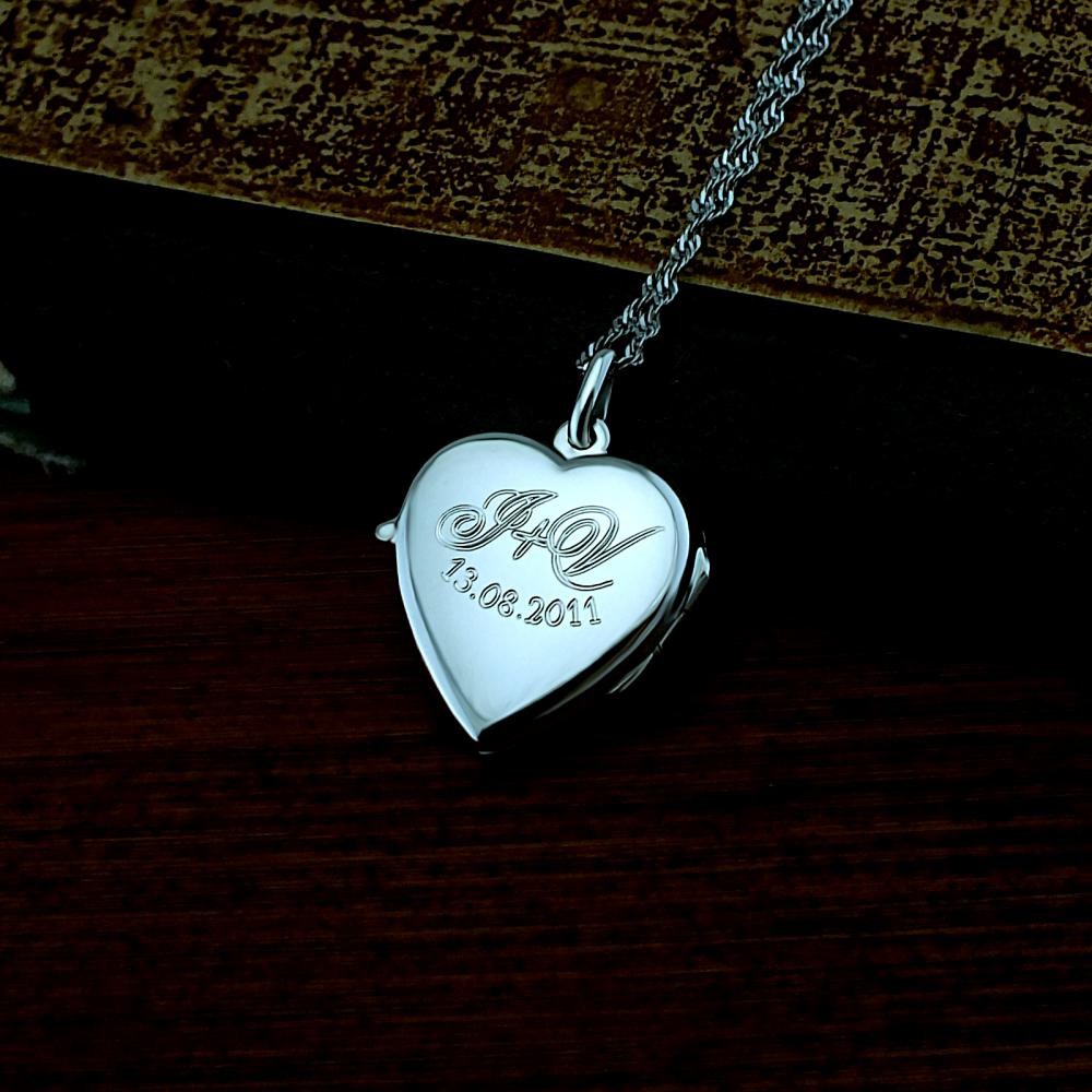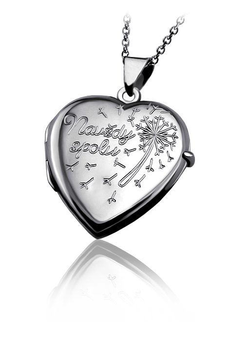 Stříbrný přívěsek, otevírací medailonek ve tvaru srdíčka s rytým motivem. Přívěsek je vyrobený ze stříbra ryzosti 925/1000 v lesklé povrchové úpravě. Rytí věnování na medailonek je zcela na vás, na fotografii je pouze ilustrativní vzor (na přední stranu lze vyrýt max. dvě, tři slova). Na zadní stranu můžeme vyrýt krátké věnování ( miluji tě, k narozeninám, od babičky...).. Veškeré rytí na dámský medailonek je už zahrnuto v ceně přívěsku. Požadovanou rytinu nám napište do poznámky v objednávce (třetí krok v košíku). Pokud budete chtít vložit vaše fotografie do medailonku, pošlete nám je emailem s číslem vaší objednávky.