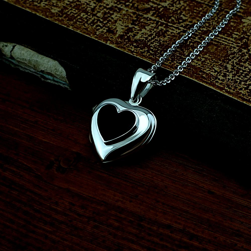 Stříbrný otevírací medailonek zdobený syntetickým onyxem. Přívěsek ve tvaru srdíčka je vyrobený ze stříbra ryzosti 925/1000 v lesklé povrchové úpravě. Do otevíracího medailonku lze vložit dvě fotografie. (fotografie vám rádi do přívěsku vložíme). Na zadní stranu lze vyrýt krátké věnování (miluji tě, k narozeninám, od babičky...). Rytí je už v ceně přívěsku. Požadovanou rytinu nám napište do poznámky v objednávce (třetí krok v košíku). Pokud budete chtít vložit vaše fotografie do medailonku, pošlete nám je emailem s číslem vaší objednávky.