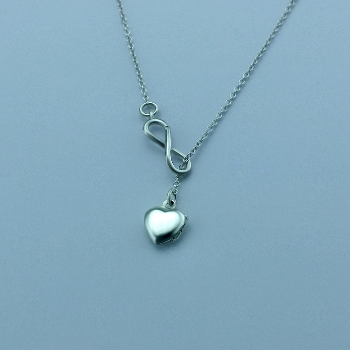 Přívěsek nekončna je vyrobený ze stříbra ryzosti 925/1000 v lesklé povrchové úpravě. Rytí na medailonek je zcela na vás, na fotografii je pouze ilustrativní vzor. Vzhledem k malé velikosti přívěšku doporučeujeme např. iniciály. Veškeré rytí na srdíčko je už zahrnuto v ceně přívěsku. Požadovanou rytinu nám napište do poznámky v objednávce ( třetí krok v košíku ).