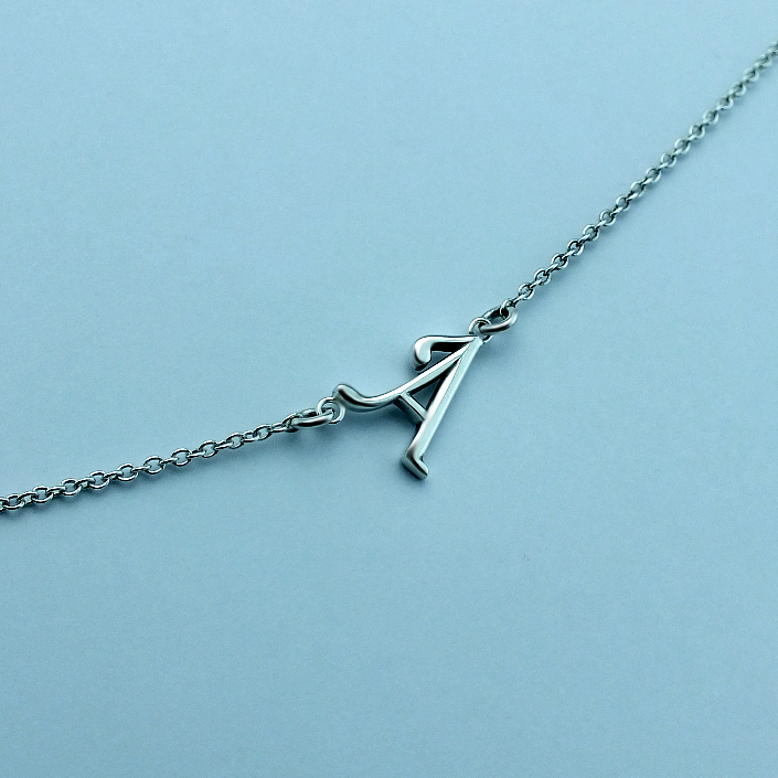 Náhrdelník s písmenkem vyrobený ze stříbra ryzosti 925/1000 v lesklé povrchové úpravě. Písmenko je navlečeno na řetízku o délce 45cm ( velikost můžeme na přání upravit ) K dostání jsou všechna stříbrná písmena. Požadované písmenko nám napište do poznámky v objednávce ( třetí krok v košíku ).