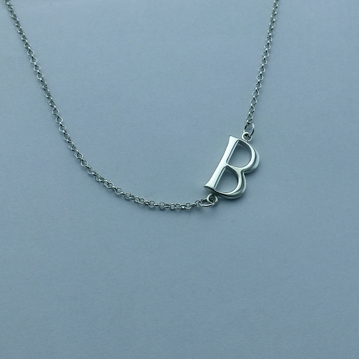 Náhrdelník s písmenkem vyrobený ze stříbra v lesklé povrchové úpravě. Písmenko je navlečeno na řetízku o délce 45cm ( velikost můžeme na přání upravit ) K dostání jsou všechna písmena. Požadované písmenko nám napište do poznámky v objednávce ( třetí krok v košíku ).