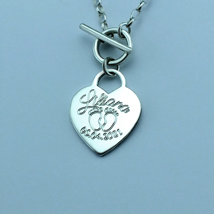 Řetízek a srdíčko jsou vyrobené ze stříbra v lesklé povrchové úpravě ryzosti 925/1000. Náhrdelník je zdobený leštěným srdíčkem s možností vyrýt věnování. Rytí na srdíčko je zcela na vás, na fotografii je pouze ilustrativní vzor. Na zadní stranu můžeme vyrýt další text dle vašeho přání. Veškeré rytí na srdíčko je už zahrnuto v ceně náhrdelníku. Požadovanou rytinu nám napište do poznámky v objednávce (třetí krok v košíku). Zapínaní je na kroužek a délka řetízku je 50cm, pokud budete chtít jinou délku napište nám o ni do poznámky v objednávce.