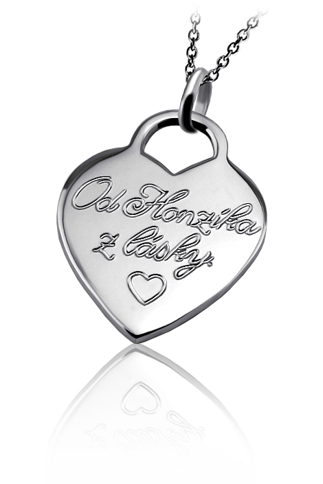 Řetízek a srdíčko jsou vyrobené ze stříbra v lesklé povrchové úpravě. Rytí na srdíčko je zcela na vás, na fotografii je pouze ilustrativní vzor. Veškeré rytí na srdíčko je už zahrnuto v ceně náhrdelníku. Požadovanou rytinu nám napište do poznámky v objednávce (třetí krok v košíku). Zapínaní je na péroví kroužek a délka řetízku je 45 cm, pokud budete chtít jinou délku napište nám o ni do poznámky v objednávce.
