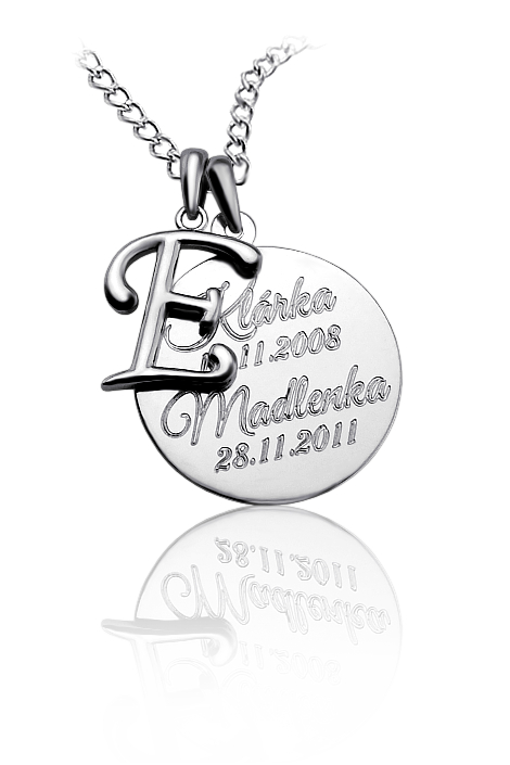 Náhrdelník se jmény a písmenkem je vyrobený ze stříbra ryzosti 925/1000 v lesklé povrchové úpravě. Stříbrné kolečko a písmenko jsou navlečeny na řetízku o délce 50cm (délku řetízku můžeme na přání upravit). Požadované rytí a písmenko nám napište do poznámky v objednávce ( třetí krok v košíku ).