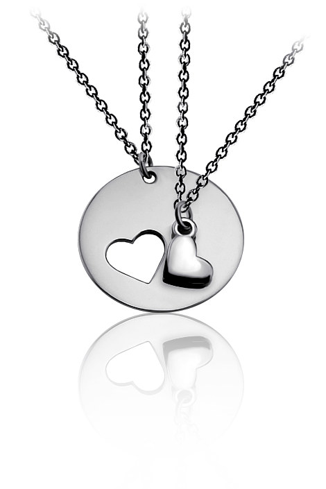 Přívěsky kolečko a srdíčko jsou vyrobeny ze stříbra ryzosti 925/1000 v lesklé povrchové úpravě. Rytí na kolečko je zcela na vás, na fotografii je pouze ilustrativní vzor. Náhrdelník je určen pro páry nebo kamarády (na kolečko se např vyryje Máš moje srdce). Součástí šperku jsou dva řetízky a krabička aby byl váš dárek kompletní. Veškeré rytí na kolečko je už zahrnuto v ceně přívěsku. Požadovanou rytinu nám napište do poznámky v objednávce ( třetí krok v košíku ).