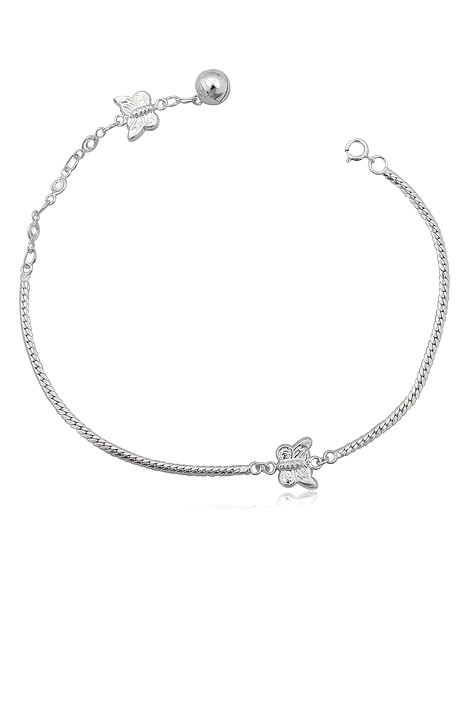 Dámský stříbrný náramek na nohu zdobený dvěma motýlky. Zapínání u náramku jse muže posouvat.