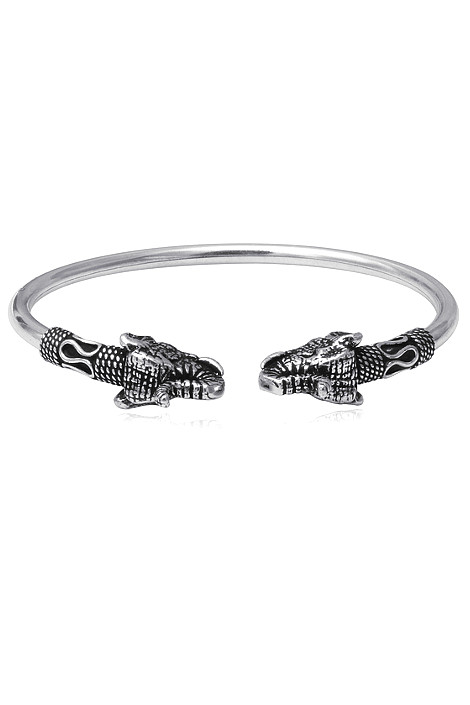 Dámský náramek vyrobený ze stříbra ryzosti 925/1000. Náramek je zdoben dvěma slony a je proveden do starostříbra (patina).