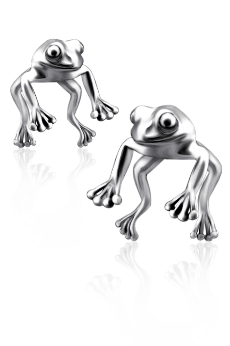 Stříbrné náušnice ve tvaru žabiček v lesklé povrchové úpravě. Žabka má oddělenou hlavu s dříkem a tělo se nasazuje z druhé strany ucha. Cena naušnic je za pár. Pokud budete chtít je jednu, napište nám o ni do poznámky v objednávce ( třetí krok v košíku ). Cena pak bude poloviční.