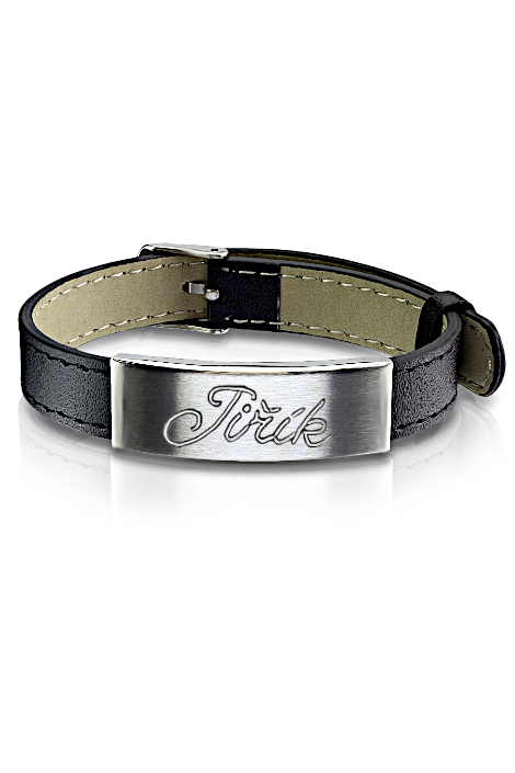 Na hladkou destičku lze vyrýt jméno, datum narození nebo krevní skupinu (rytí už je v ceně náramku).