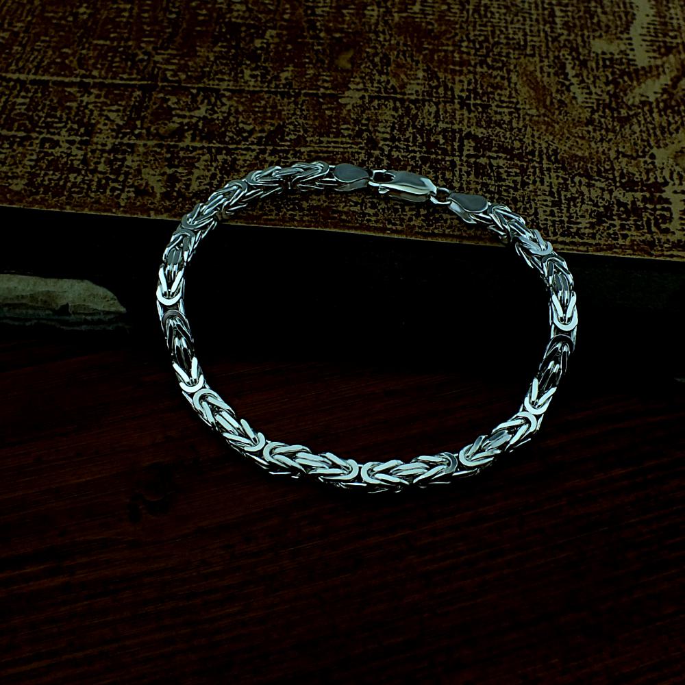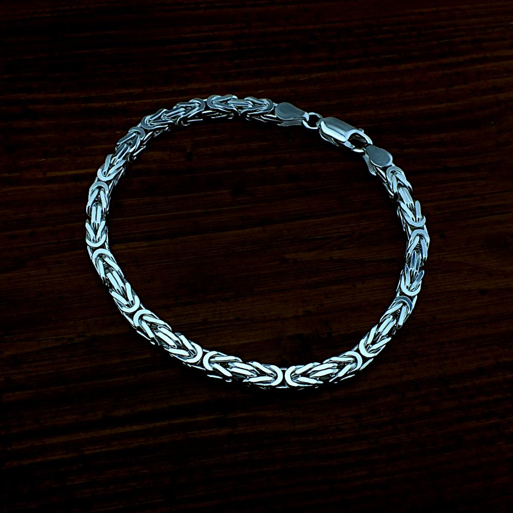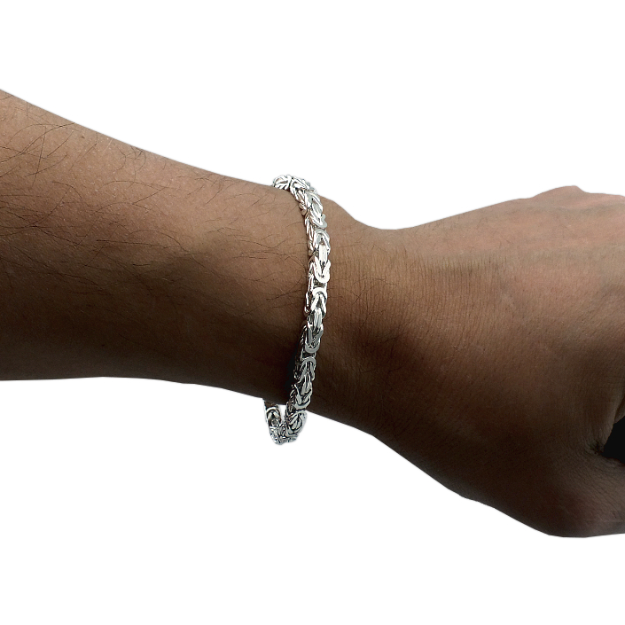 Pánský stříbrný náramek vzor Bizantyna v lesklé povrchové úpravě. Náramek je vyrobený ze stříbra ryzosit 925/1000 se zapínáním na karabinku. Šířka náramku je 4,2 mm a délka 20 cm (běžná pánská velikost).
