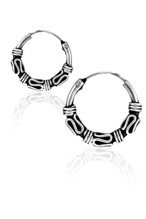Stříbrné náušnice ve tvaru kruhu v patinované povrchové úpravě. Pánské kruhy jsou vyrobeny ze stříbra ryzosti 925/1000 a následně patinovány ( prohlubně jsou začerněny ).