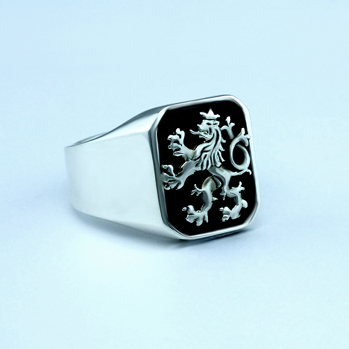 Pánský prsten je vyroben ze stříbra v lesklé povrchové úpravě a zdobený Českým lvem. Prsten vyrábíme ve všech pánských velikostech. Požadovanou velikost prstenu nám napište do poznámky v objednávce ( třetí krok v košíku ).