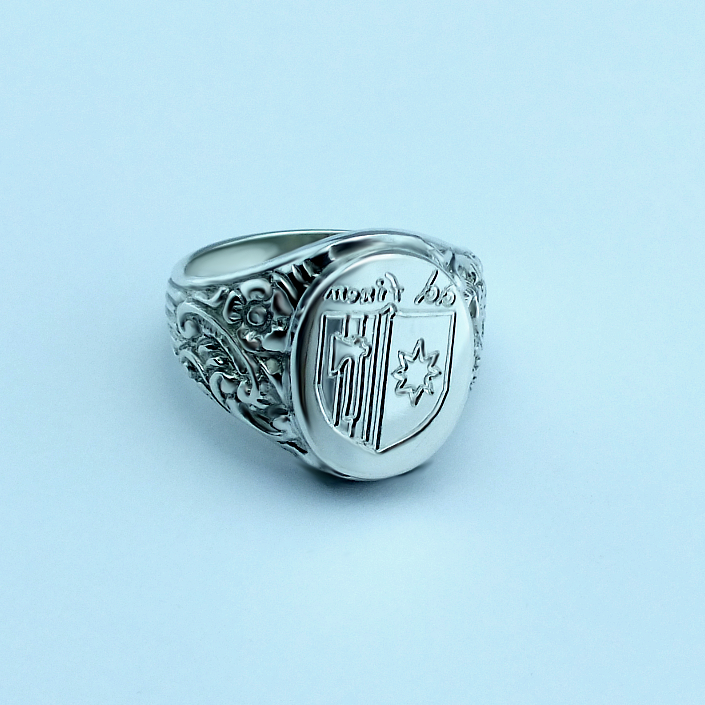 Pánský prsten je vyroben ze stříbra ryzosti 925/1000 a následně je patinovaný. Prohlubně jsou začerněny, to zvýrazňuje plastičnost prstenu. Pánský prsten je také možné nechat v lesklé povrchové úpravě. Monogram nebo logo vám vyryjime dle vašeho přání. Cena prstenu je už včetně rytí. Pánský prsten vyrábíme ve všech velikostech. Velikost a monogram nám napište do poznámky v objednávce ( třetí krok v košíku ).