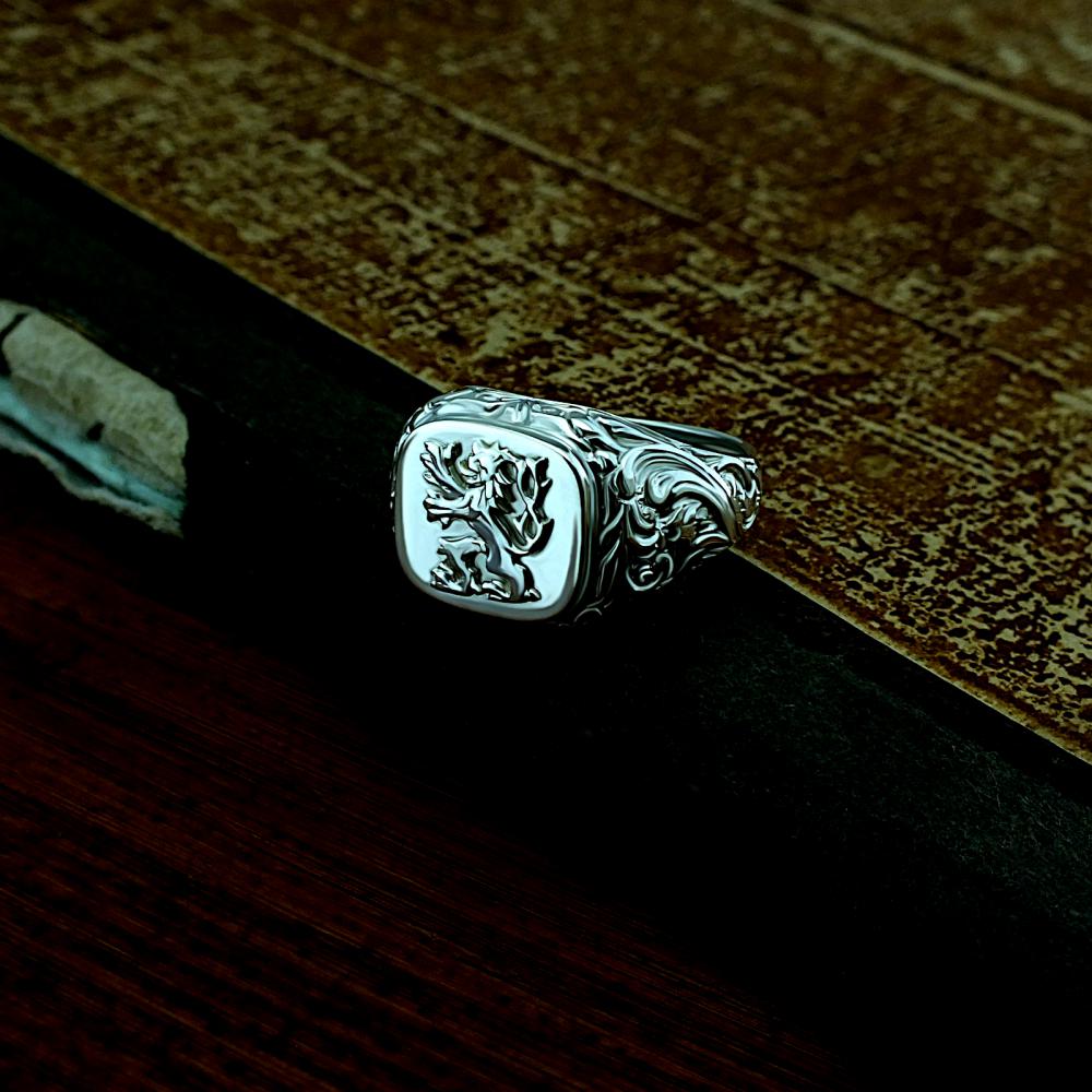 Pánský pečetní prsten je vyroben ze stříbra ryzosti 925/1000 a následně patinován. Stříbrný prsten je zdoben českým lvem. Prsten vyrábíme ve všech velikostech. Požadovanou velikost nám napište do poznámky v objednávce (třetí krok v košíku).