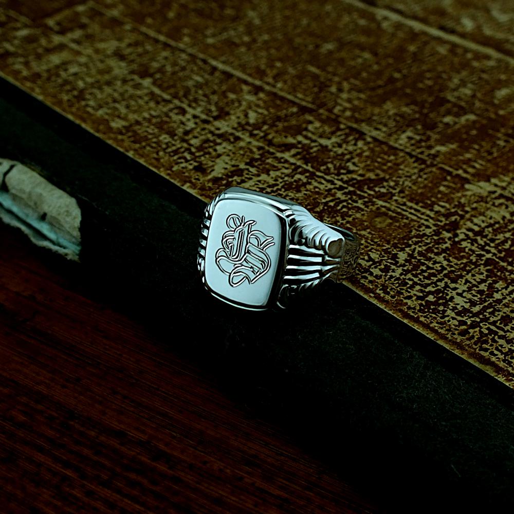 Pánský prsten je vyroben ze stříbra ryzosti 925/1000 a následně patinován. Monogram nebo logo vyryjime dle vašeho přání. Cena pánského prstenu je už včetně rytí. Prsten vyrábíme ve všech velikostech. Velikost a monogram nám napište do poznámky v objednávce (třetí krok v košíku).