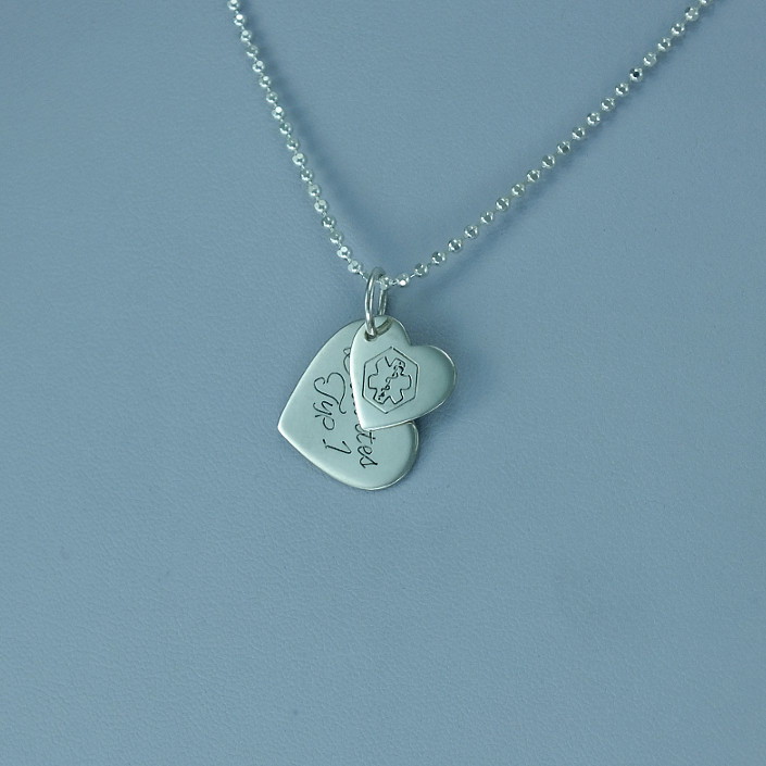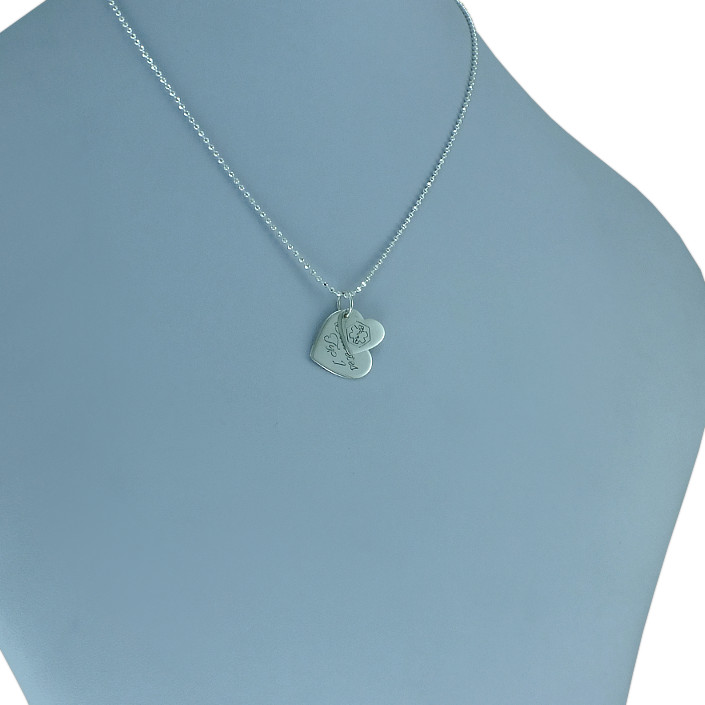 Dámské psí známky vyrobeny ze stříbra ryzosti 925/1000. V lesklé povrchové úpravě zdobené vlastním rytím. Na srdíčka můžeme vyrýt i věnování nebo monogram. K přívěsku je zahrnuta krabička na kterou se vejde i delší text. Veškeré požadavky nám napište do poznámky v objednávce (třetí krok v košiku).