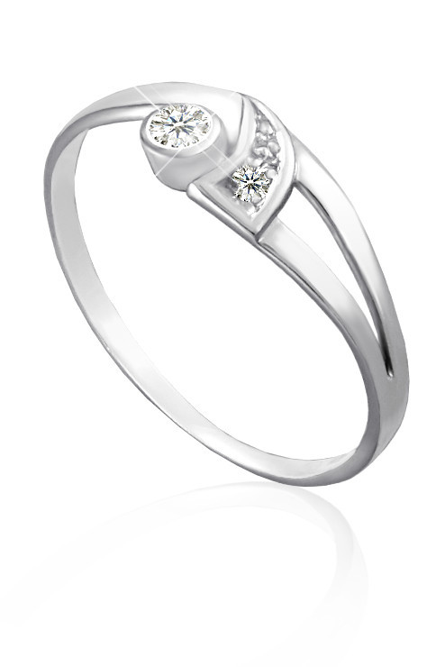 Dámský zlatý prsten zdobený dvěma čirými zirkony velikosti 3mm a 1mm. Elegantní prstýnek z bílého zlata vhodný i jako zásnubní. Prsten je vyrobený z bílého zlata ryzosti 585/1000 v lesklé povrchové úpravě. Prsten je možné vyrobit i ze žlutého zlata, nebo stříbra a vsadit druh kamene dle vašeho přání. Prsten vyrábíme ve všech velikostech. Veškeré vaše požadavky nám napište do poznámky v objednávce (třetí krok v košíku)