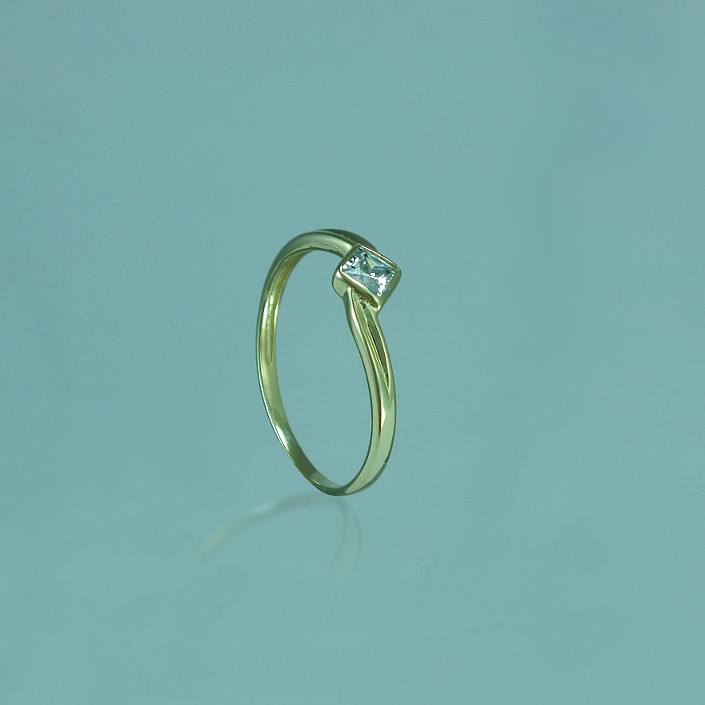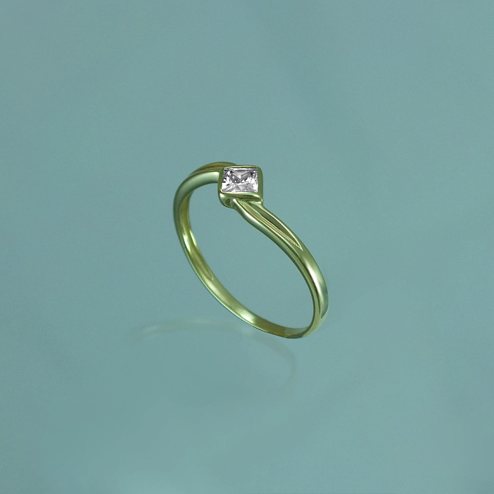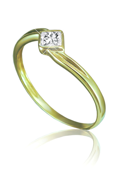 Prsten ze žlutého zlata se zirkonem v lesklé povrchové úpravě. Zlatý prsten je vyroben v ryzosti 585/1000 a bude elegantní ozdobou každé ženy. Prsten je možné vyrobit i z bílého zlata, popřípadě i ze stříbra. Prsten vyrábíme ve všech velikostech. Velikost nám napište do poznámky v objednávce.