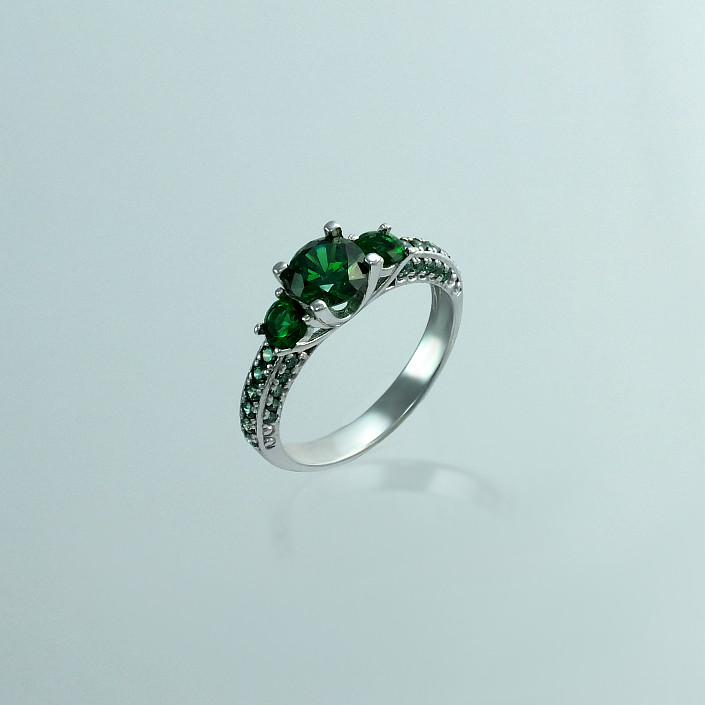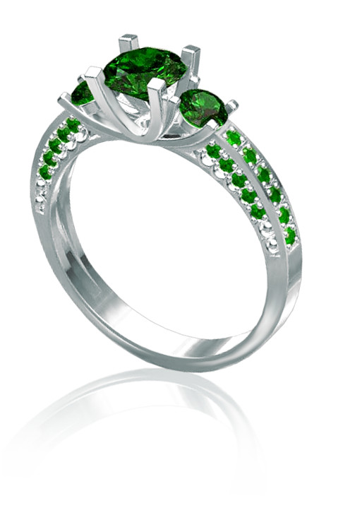 Prsten je vyroben z bílého čtrnácti karátového zlata v lesklé povrchové úpravě se zelenými zirkony. Nejexkluzivnější prsten v naší nabídce, kde středový kámen má průměr 6 mm a postranní 4 mm. Dámský prsten je vhodný i jako luxusní zásnubní prsten. Z důvodu designu prstenu je nejmenší vyráběná velikost 53. Prsten je možné vyrobit i ze žlutého zlata, nebo stříbra a vsadit druh kamene dle vašeho přání. Prsten vyrábíme ve všech velikostech. Veškeré vaše požadavky nám napište do poznámky v objednávce (třetí krok v košíku)