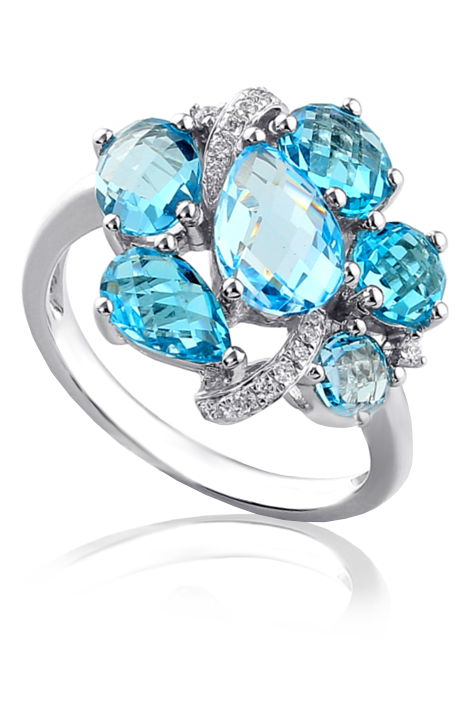 Prsten vyroben z bílého čtrnáctikarátového zlata ryzosti 585/1000 v lesklé povrchové úpravě s diamanty a modrým topazem. Klenot vyzařuje respekt, vášeň, smysl pro lehkost a eleganci. Při výrobě byl kladen velký důraz na řemeslnou kvalitu. Objednávat můžete ve všech velikostech.