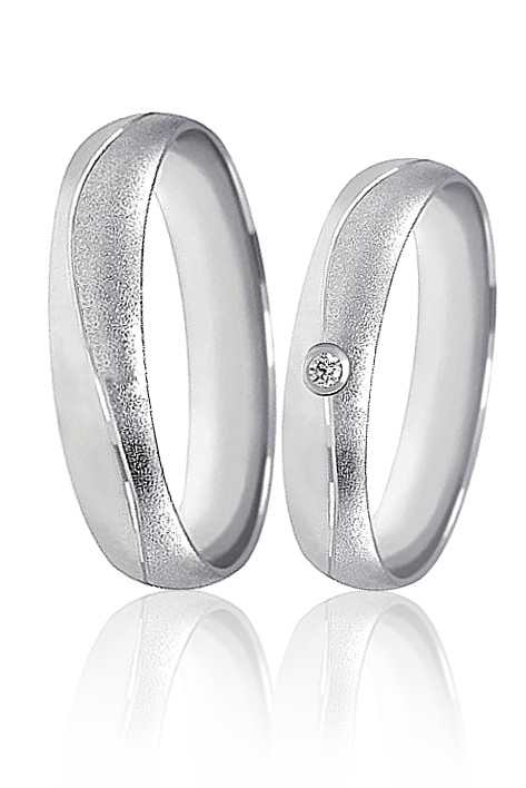 Snubní prsteny z bílého čtrnácti karátového zlata. Zdobený jedním zirkonem nebo briliantem. Matná a lesklá povrchová uprava u prstýnku doplněna rytou vlnkou. Šířka prstenu je 4mm. Cena obou prstenů je udávána ve velikosti 58 (dámský) a 60 (pánský). Velikost prstenu a rytí dovnitřku obroučky nám napište do poznámky v objednávce.