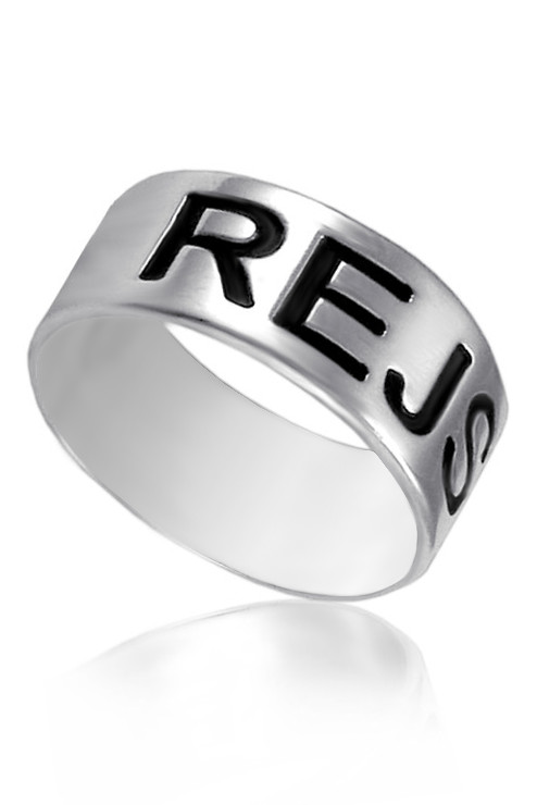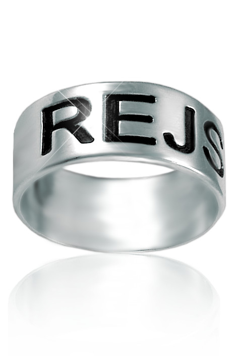 Stříbrný prsten vyrobený ze stříbra ryzosti 925/1000 s rytým textem. Rytina už je v ceně prstenu.