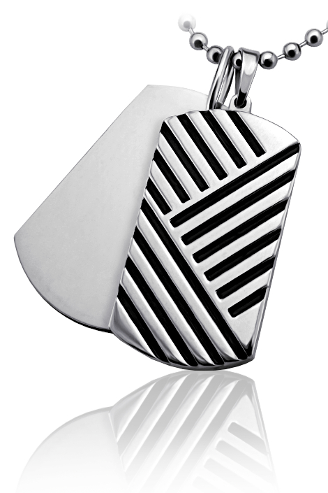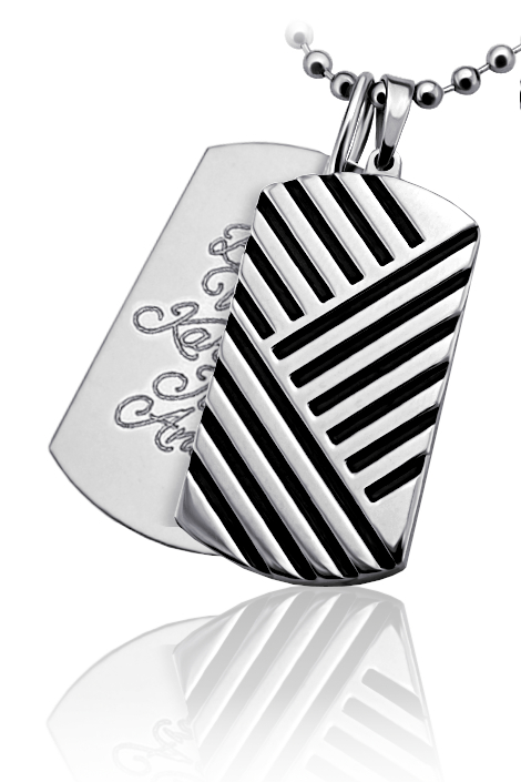 Přívěsek je vyrobený z oceli a zdobený vlastním rytím. Rytí jména nebo iniciálu je už v ceně přívěsku. K přívěsku je už zahrnut řetízek a dárková krabička na kterou můžeme vyrýt delši věnování. Požadovanou rytinu nám napište do poznámky v objednávce (třetí krok v košíku).